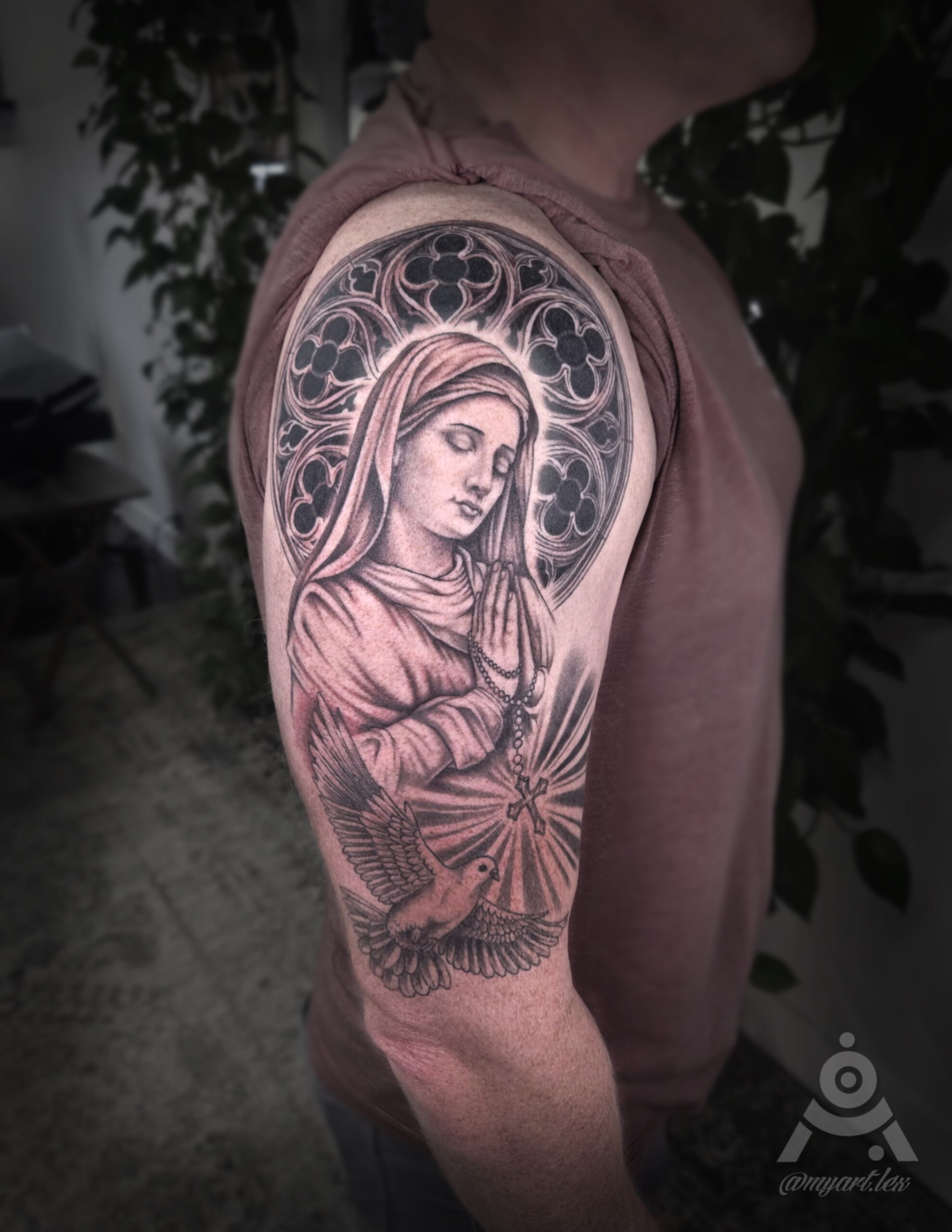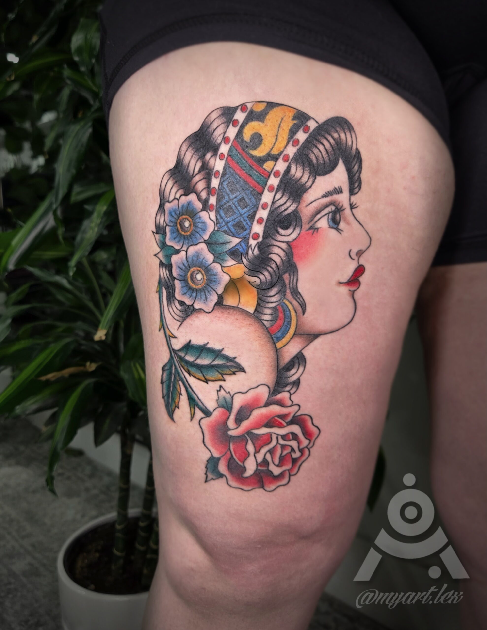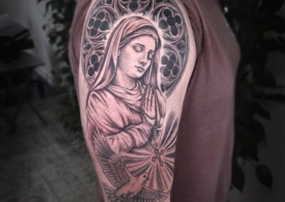 Vaeda is a tattoo artist with a passion for turning ideas into lasting art. Tattooing professionally since 2020, she specializes in black and grey realism—particularly portraits and whimsical, cute creatures. With a keen eye for detail, Vaeda finds deep satisfaction in capturing facial features and bringing them to life on skin in a way that feels both real and expressive.
